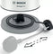The Bosch TWK5P471GB 1.7 L Jug Kettle, in an elegant White Metallic, blends functionality with style for any modern kitchen. This cordless kettle's key features include a cup indicator for boiling only the needed water, enhancing energy efficiency. Its design facilitates easy filling through either spout or lid and includes a lighted on-off switch for convenience. The kettle boasts safety features like dry boil protection and automatic shut-off, ensuring user safety. A removable stainless steel limescale filter and a concealed heating element within a stainless steel base highlight its maintenance ease and durability. With a capacity of 1.7 litres, it's perfectly suited for both large families and entertaining needs.