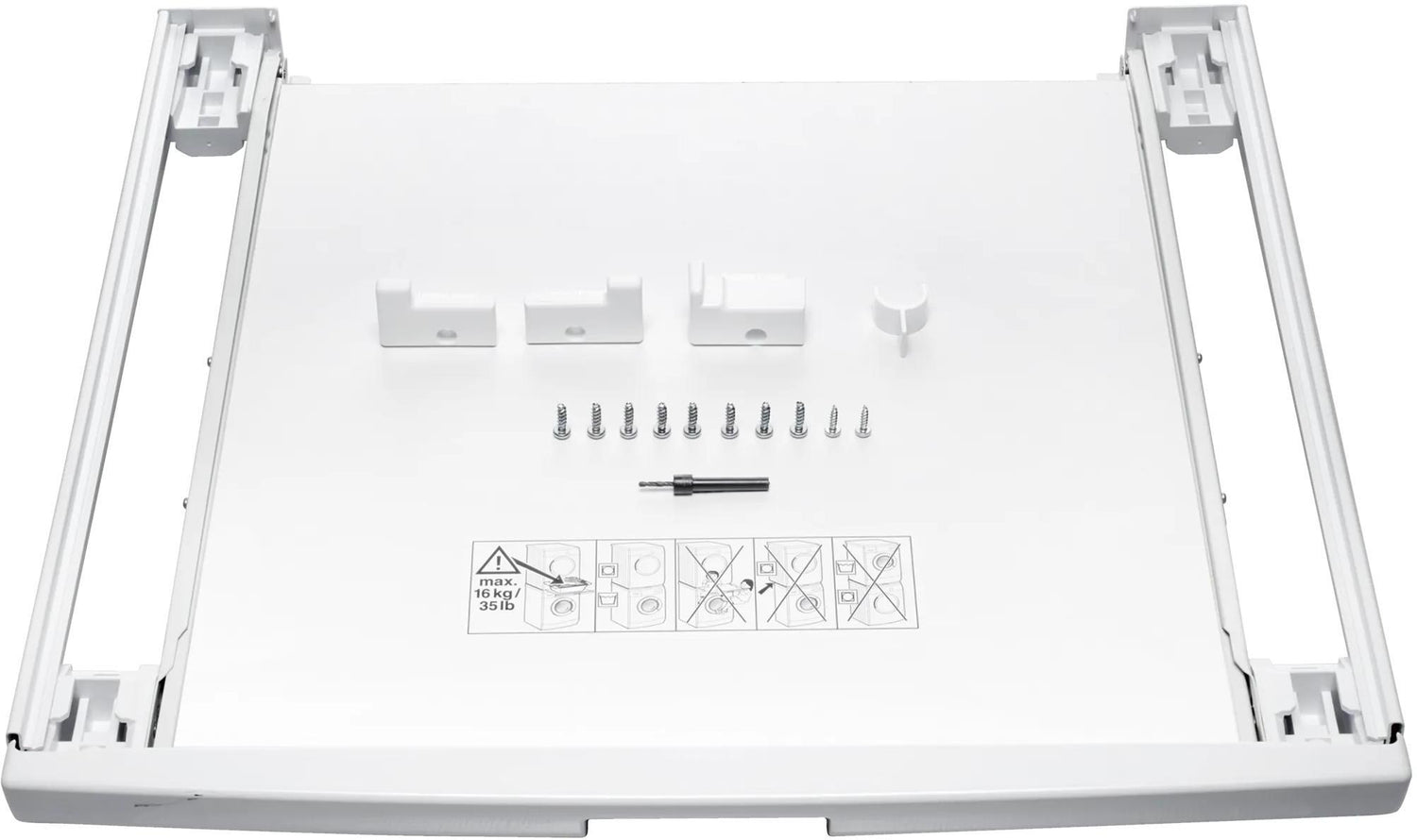 - Stacking kit for safe alignment of tumble dryers on top of washing machines