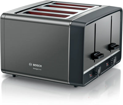 In summary, the Bosch TAT5P445GB 4 Slice Toaster in anthracite, combines style and functionality to deliver a convenient toasting solution for your kitchen. Say goodbye to uneven toasting and hello to perfectly toasted bread every morning.