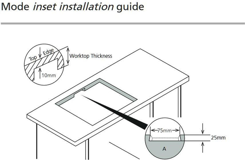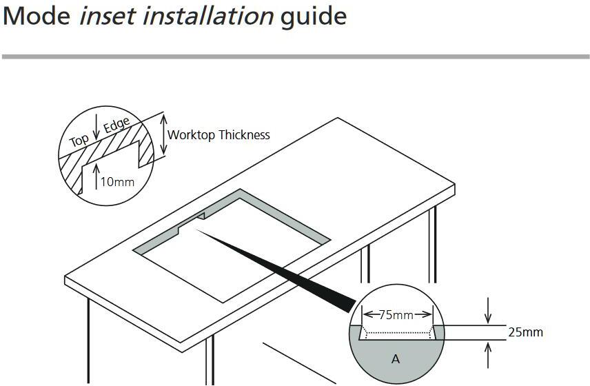 - When Inset Fitting The Mode Sinks, A Recess/Notch Will Need To Be Made In The Underside Of The Worktop To Enable The Overflow To Be Fitted To The Sink. View A Shows Theworktop From The Underside. Check The Required Position Of The Recess/Notch By Offering The Sink (With Overflow Fitted) Into The Cut-Out. Then Mark Your Worktop In The Required Position. (For Guidance The Recess/Notch Should Be Approximately 75mm Wide And 25mm Deep, And 10mm From The Top Edge Of The Worktop. When Cutting The Recess/Notch Ensure There Is Enough Clearance For The Complete Overflow Body.
