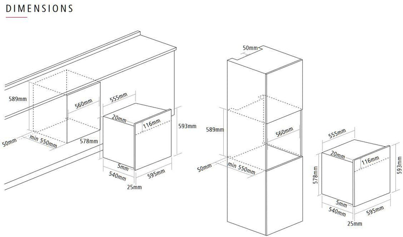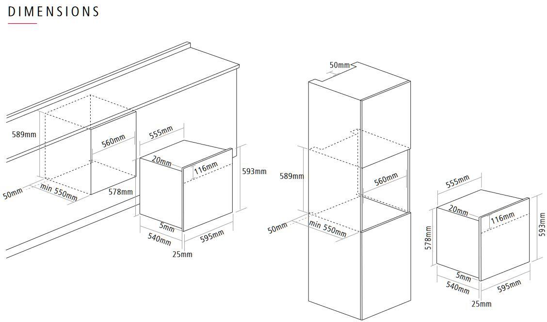 - Installation Requirements (hwd): 589 x 560 x 550 mm