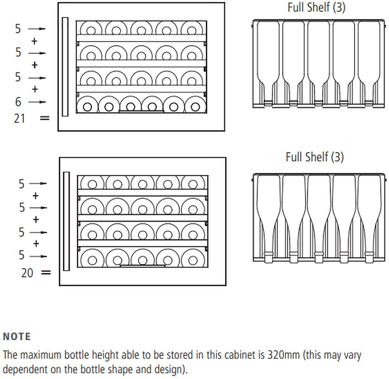 - Shelves Can Accommodate 750ml Bordeaux or Burgundy Bottles