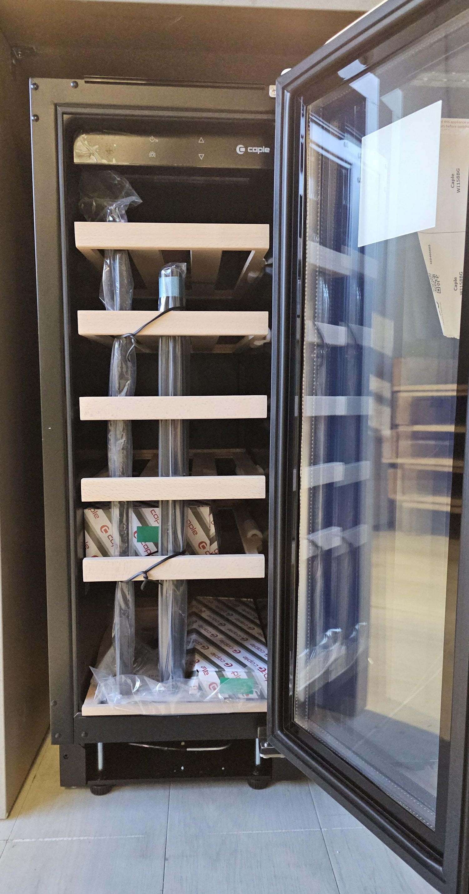 Clearance Bargain, Limited Delivery Area (parts of Surrey, Sussex or Kent) Or Collection Only - As New - No Packaging.This single-zone undercounter Caple wine cabinet features a stylish gunmetal framed UV protecting glass door, making it ideal for contemporary kitchens. Simply set your desired temperature with the touch-controls and LED display and the electronic temperature control and no-frost compressor cooling will ensure it’s perfectly maintained. The Caple WI3125GM comes equipped with 5 sliding beech shelves and a base shelf, which can be adjusted to accommodate champagne bottles or kept as they are to hold up to 19 Bordeaux wine bottles.
