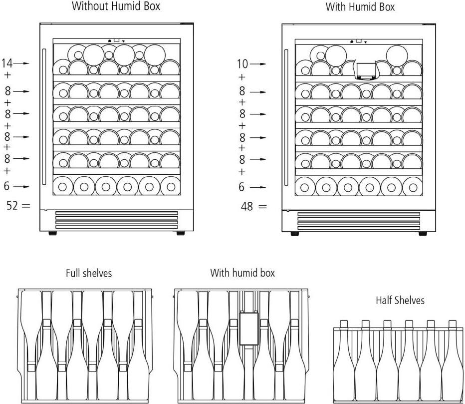 - Shelves Can Accommodate 750ml Bordeaux, Burgundy And Champagne Bottles