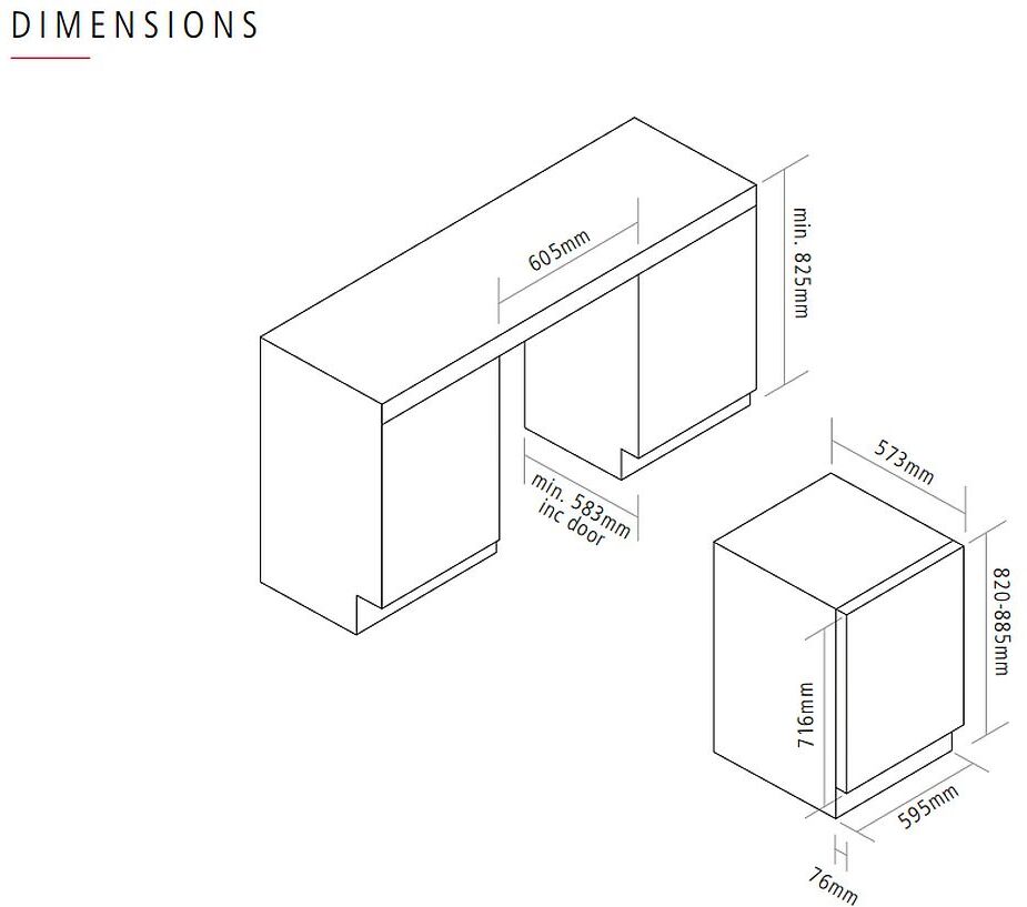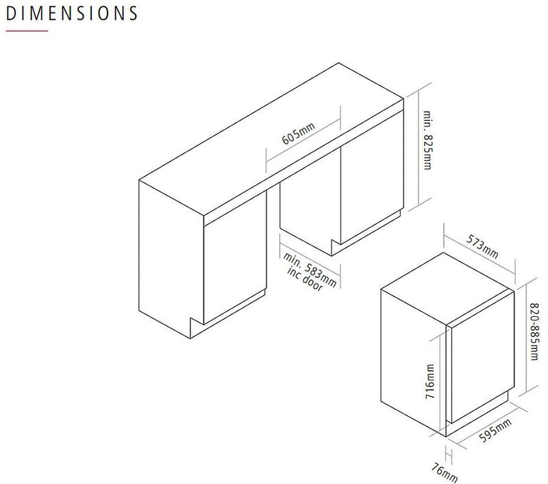 - Niche Dimensions (h w d): 825 x 605 x 583 mm