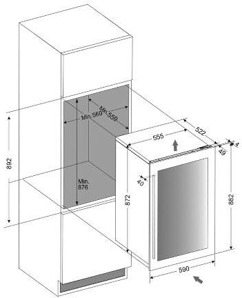 Dunavox PRIME-44 In-column With Handle Wine Cooler - Black Glass