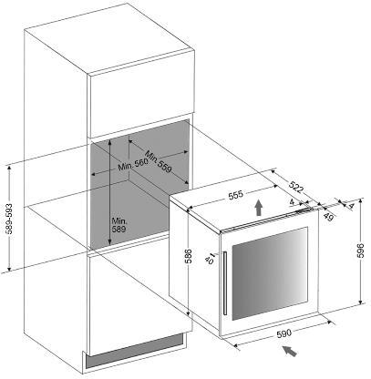 Energy efficiency is another key aspect of the DVS-25-65DSS. With an energy efficiency rating of F and an annual energy consumption of 101 kWh, this wine cooler is designed to operate efficiently, ensuring that your wine is stored in optimal conditions without consuming excessive energy. The integrated design of the cooler, complete with an integrated ventilation system, ensures that it fits seamlessly into your kitchen without the need for additional plumbing or ventilation adjustments.