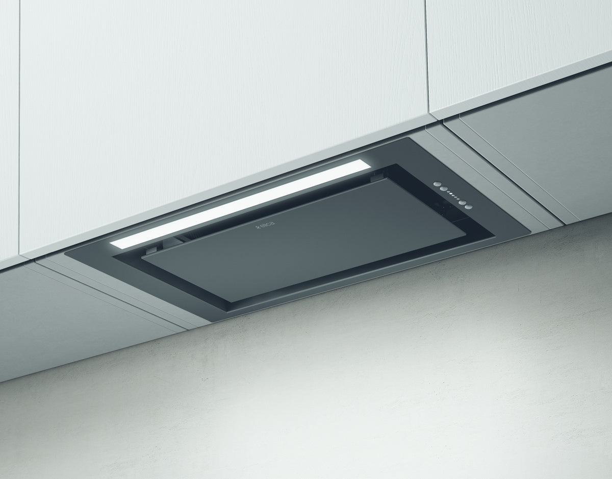 Installation can be done in total safety in just a few steps, safeguarding the look of the product and the space in which it is positioned. After the hood is automatically locked in position, the fastening points can be finely adjusted to preserve the linear design of the kitchen and ensure perfect integration of the hood in the room. A simple, hard-wearing and safe solution.