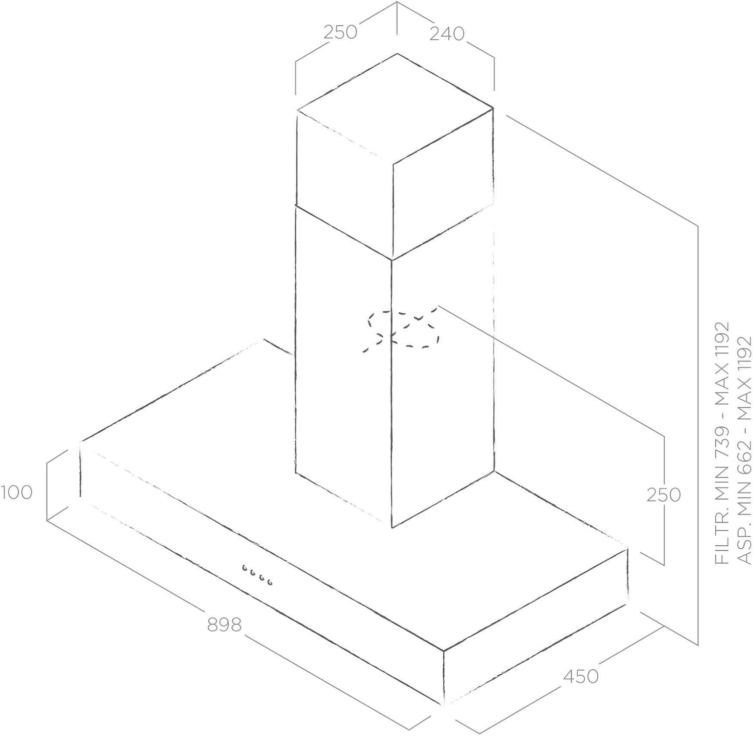 The Elica SPOT-URB is equipped with an internal motor that provides an impressive airflow range of 350 to 900 m³/h. It offers four different speed settings to ensure optimal air extraction, with a maximum extraction rate of 630 m³/h during normal usage. Despite its high-performance capability, this hood maintains a noise level ranging from a subtle 52 dB to a maximum of 71 dB, depending on the speed setting. This ensures a pleasant cooking experience without the intrusion of excessive noise.