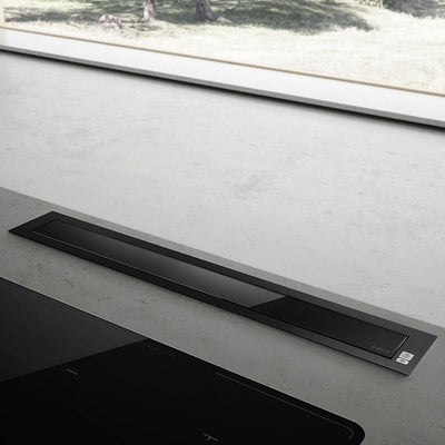 Situated inside your cooktop, this Elica downdraft extractor hood only needs to come out when you are actually cooking. Designed with a black finish, this hood is perfect for those looking for a modern minimalistic look. With three fan speeds and a booster function with an extraction rate of a 669 cubic metres per hour, you control the way the hood runs to suit your kitchen environment.