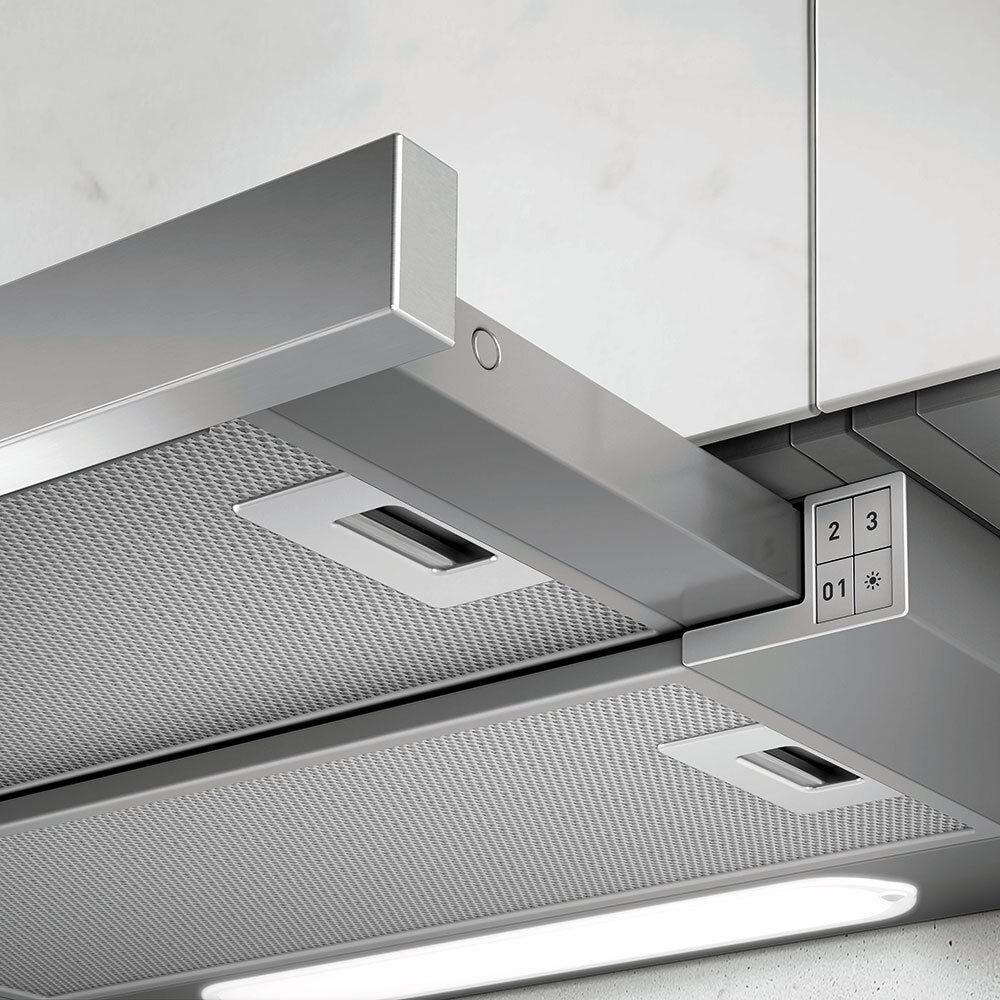 With three fan speeds you can control the hood to match your kitchen’s atmosphere. If you want to have a conversation while you cook then turn the fan setting down to the quietest, or if you want odours to disappear faster, then turn up the fan to the highest setting. Built with a sleek stainless steel design and fitted with bright LED lighting, this Elica hood is perfect for any modern kitchen.
