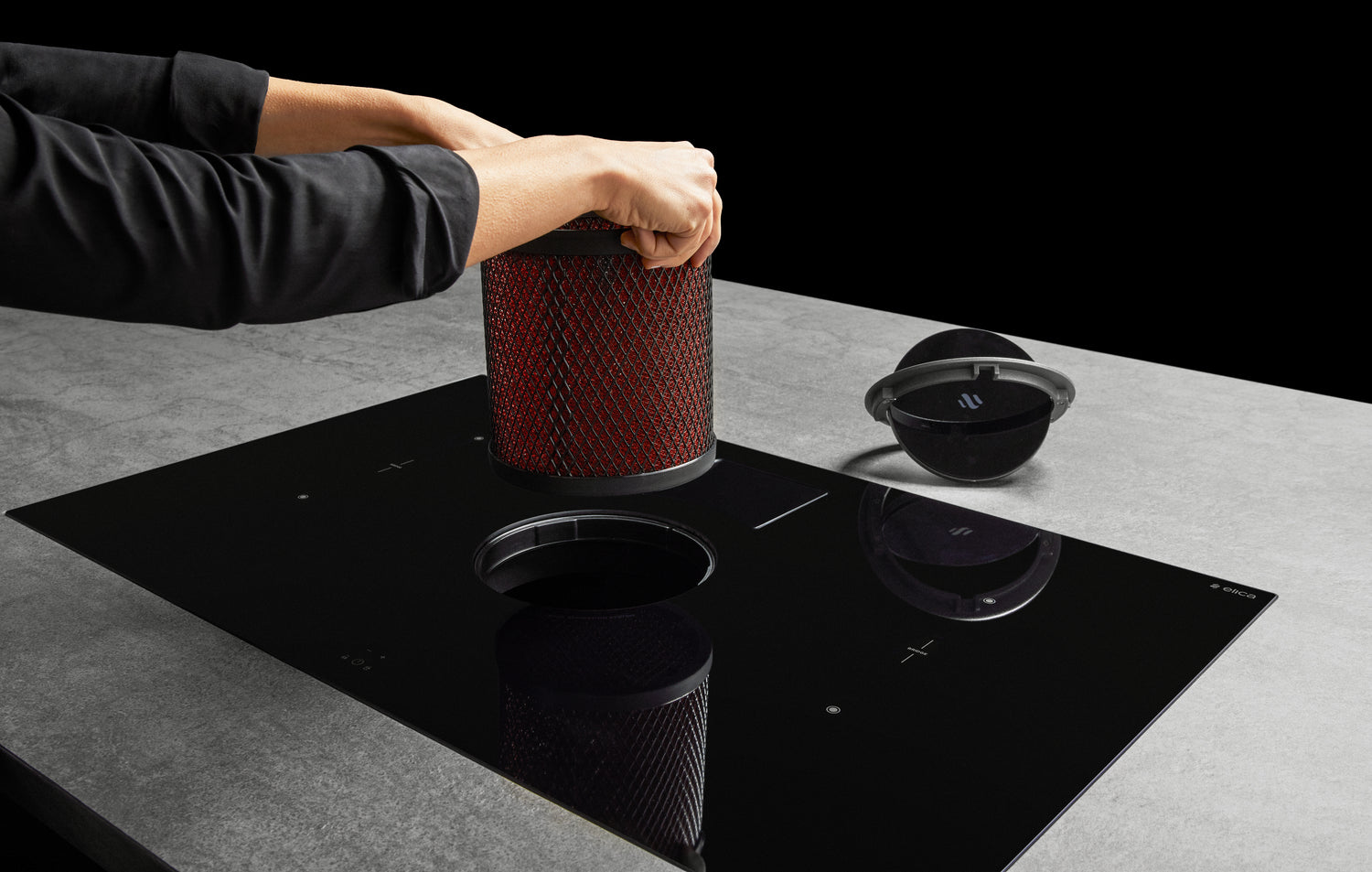Thanks to Airmatic, your extraction hob area is completely automatic. The smart sensor can distinguish between the quality of the fumes and type of cooking and combine this information with the number and power of the induction hob areas being used. Even when the hob is switched off, the system automatically adapts by gradually decreasing extraction and eliminating any residual fumes and odours.