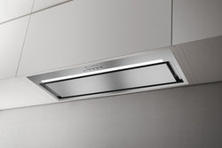 The perimeter extraction panel reduces the perceived sound by 25% (which is equal to a reduction of 3dB). This method of extraction guarantees optimised effectiveness by exploiting the principle of the Venturi effect: air accelerates as it passes through the constricted extraction space of the panel and decreases immediately inside the hood and is then easily expelled without the need for any particular pressure levels.