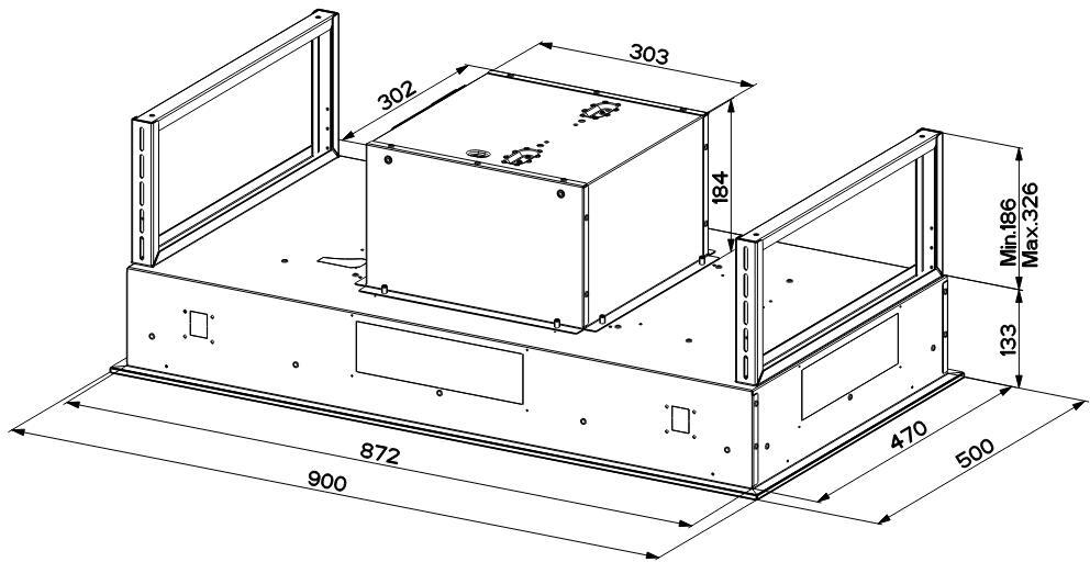 This model features three standard speeds and an intensive booster setting, allowing users to tailor ventilation to the level of cooking activity. With a maximum extraction rate of 700 m³/h using the booster function, and 560 m³/h under normal use, it efficiently clears the air of steam, smoke, and odours. The EVO diffuser technology and perimeter aspiration system ensure optimal airflow while reducing noise and energy consumption. The noise level remains within a comfortable range of 53 to 72 dB, even at maximum output, ensuring a quieter kitchen environment during use.