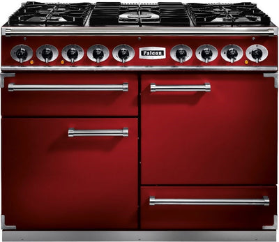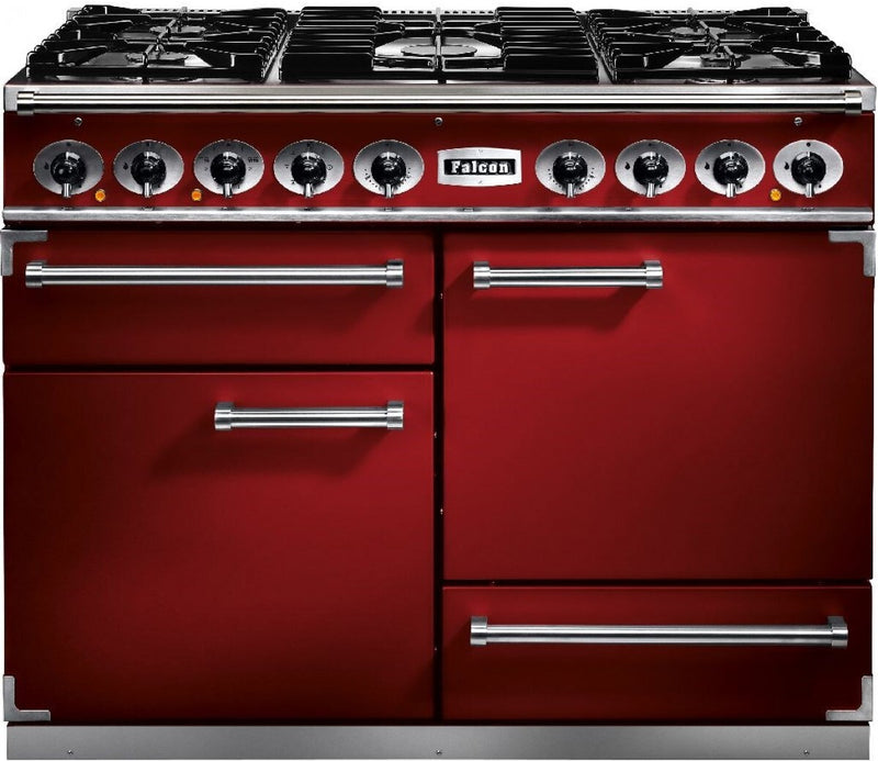 Falcon Deluxe F1092DXDFRD-NM 110cm Wide Dual Fuel Range Cooker - Cherry Red / Nickle - A Rated