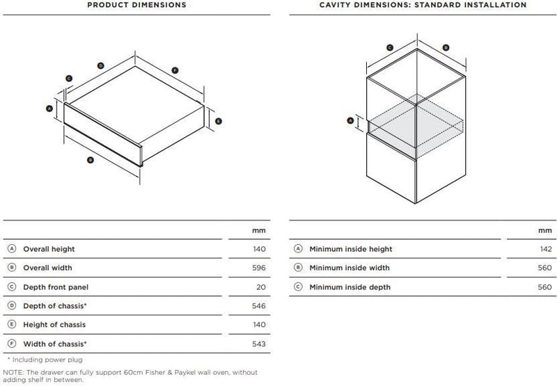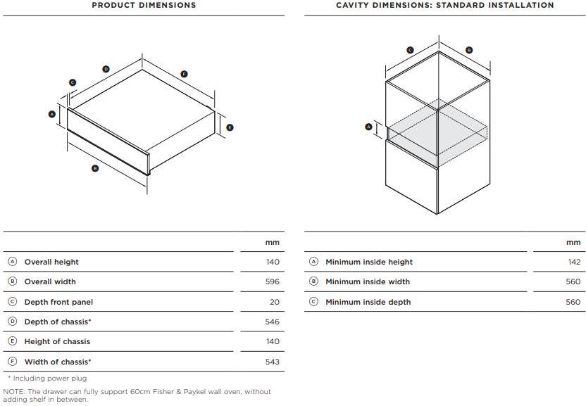 - Cavity Dimensions: (h w d): 85 x 596 x 566 mm