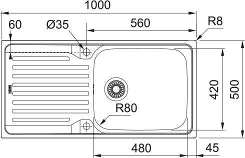 Franke Antea Azn 611-100 Rev Single Bowl Inset Sink - Stainless Steel