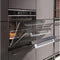 The Franke Maris Single Electric Oven is designed with user-friendly controls, offering both rotary push/pull FMA-97-P-XS knobs and convenient touch controls. The white LED display provides clear visibility of the settings and cooking progress. The drop-down door allows easy access to the oven cavity, while the door lock ensures safety during the pyrolytic cleaning process.