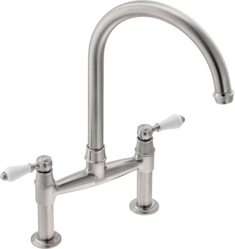 - Gloriana Classic Bridge Lever Brass, Overall height 415mm, Twin Lever, suitable for low pressure systems. Classical design in the Franke Heritage Collection