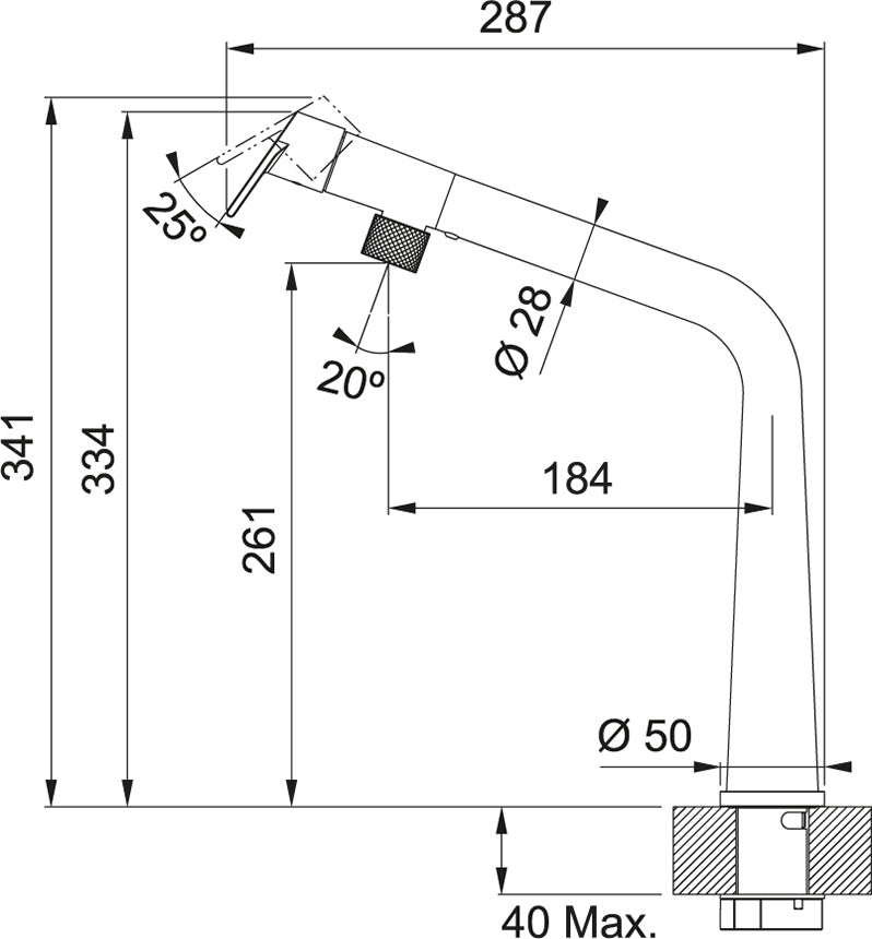 - Spout reach - 287mm