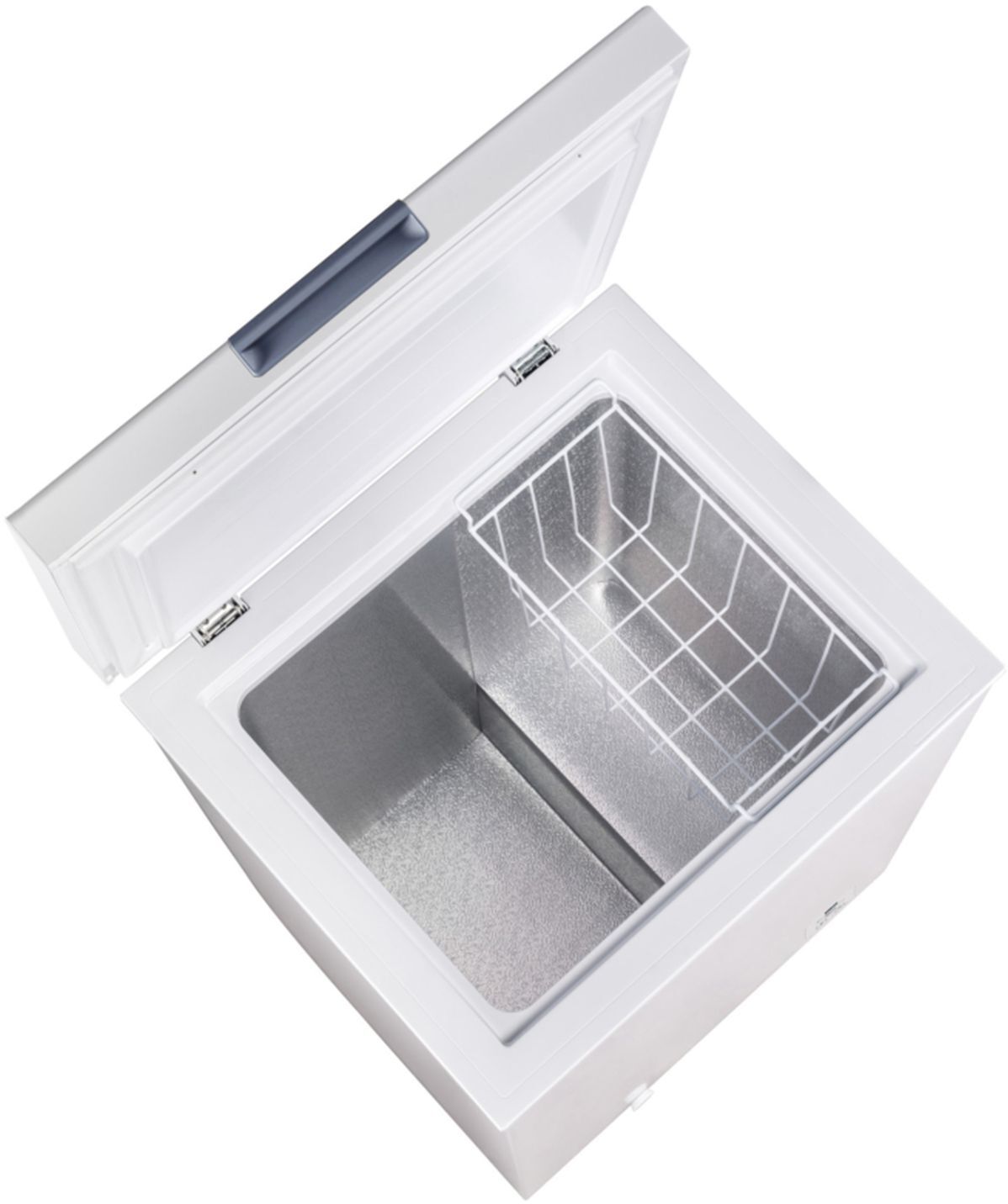 This model is designed with usability in mind. The recessed handle keeps the exterior sleek and prevents snagging in tight spaces, while the back hinges allow the lid to open smoothly and stay open while loading or unloading. Adjustable feet at both the front and rear give you the flexibility to level the appliance even on slightly uneven surfaces. Although it doesn't include shelves or drawers, the supplied basket helps organise smaller items or those you need more frequently, preventing them from getting buried underneath larger goods.