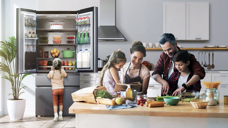 A myriad of additional features enhances your experience. Quench your thirst with chilled water from the built-in dispenser. Planning a holiday? Switch to Holiday Mode to save energy while you're away. The moisture control crisper box keeps your vegetables fresher for longer, and the interior light in the fridge section helps you find what you're looking for. Don't worry about leaving the doors open; the open door alert provides both visual and audible reminders.