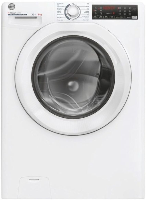 The Hoover H3WPS486TAM6-80 is a Wi-Fi and Bluetooth-enabled 8kg washing machine offering powerful 1400rpm spin and an energy-efficient A rating. With 16 wash programmes including Allergy Care Pro and Steam Care, it handles everything from delicates to heavy cottons. The Eco-Power inverter motor ensures quiet, reliable performance, while smart features like Scan to Care and Kg Mode Plus optimise each wash. Its sleek LED display, anti-crease function, and delay start option add everyday convenience. Designed with a full-cover glass door and intuitive touch controls, this freestanding model brings advanced care and efficiency to any household.