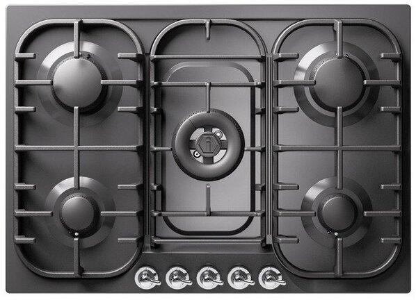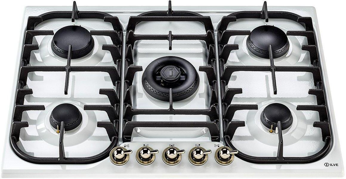This ILVE 70cm Milano gas hob features 5 high quality solid brass burners coated with a nanotechnology non-stick treatment, and surrounded by individual cast iron pan supports.