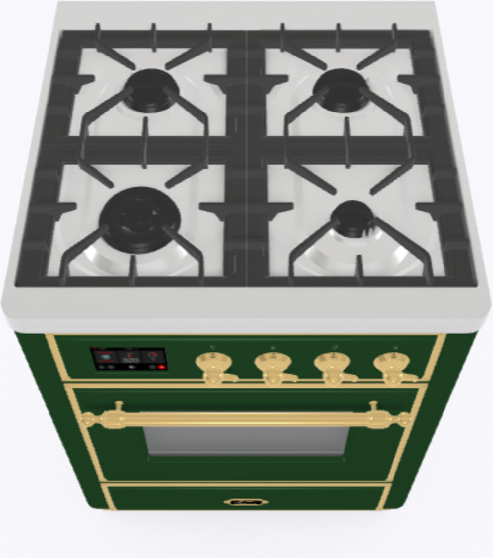 Ilve Majestic Range Cooker With Single 60 Electric Oven And 4 Gas Burner Hob, 70cm – 7 Colour Options With Chrome Or Brass Trim