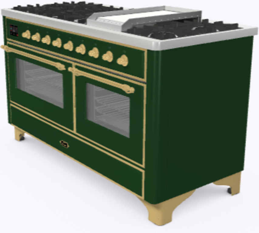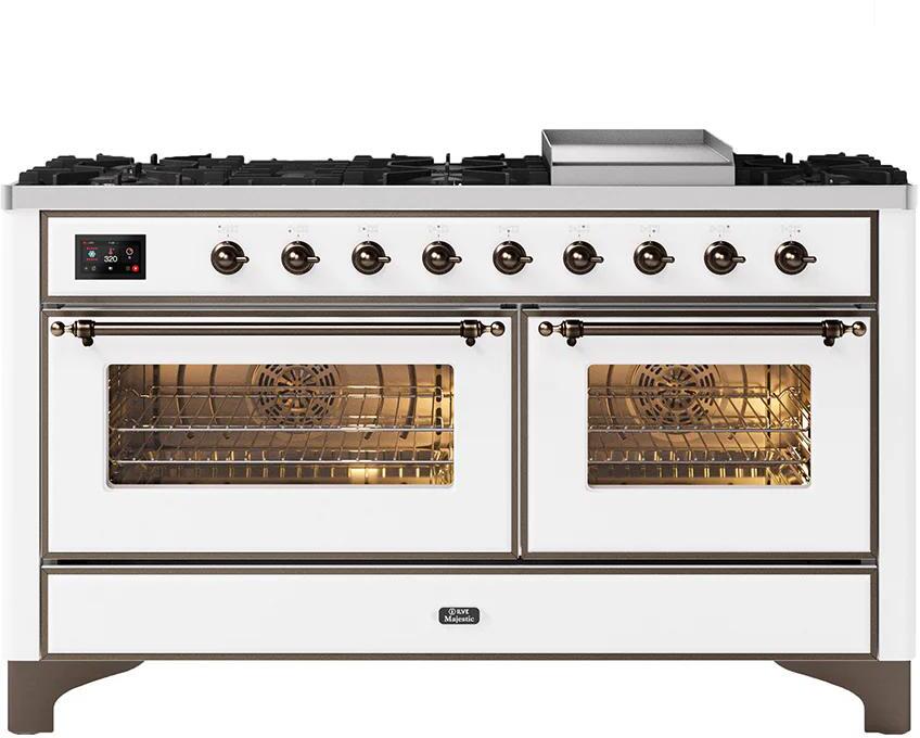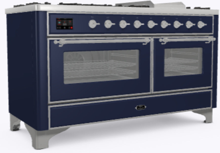 Ilve Majestic Range Cooker With Twin 90/60 Ovens And 7 Gas Burners With Fry Top, 150cm - 7 Colour Options With Chrome Or Brass Trim