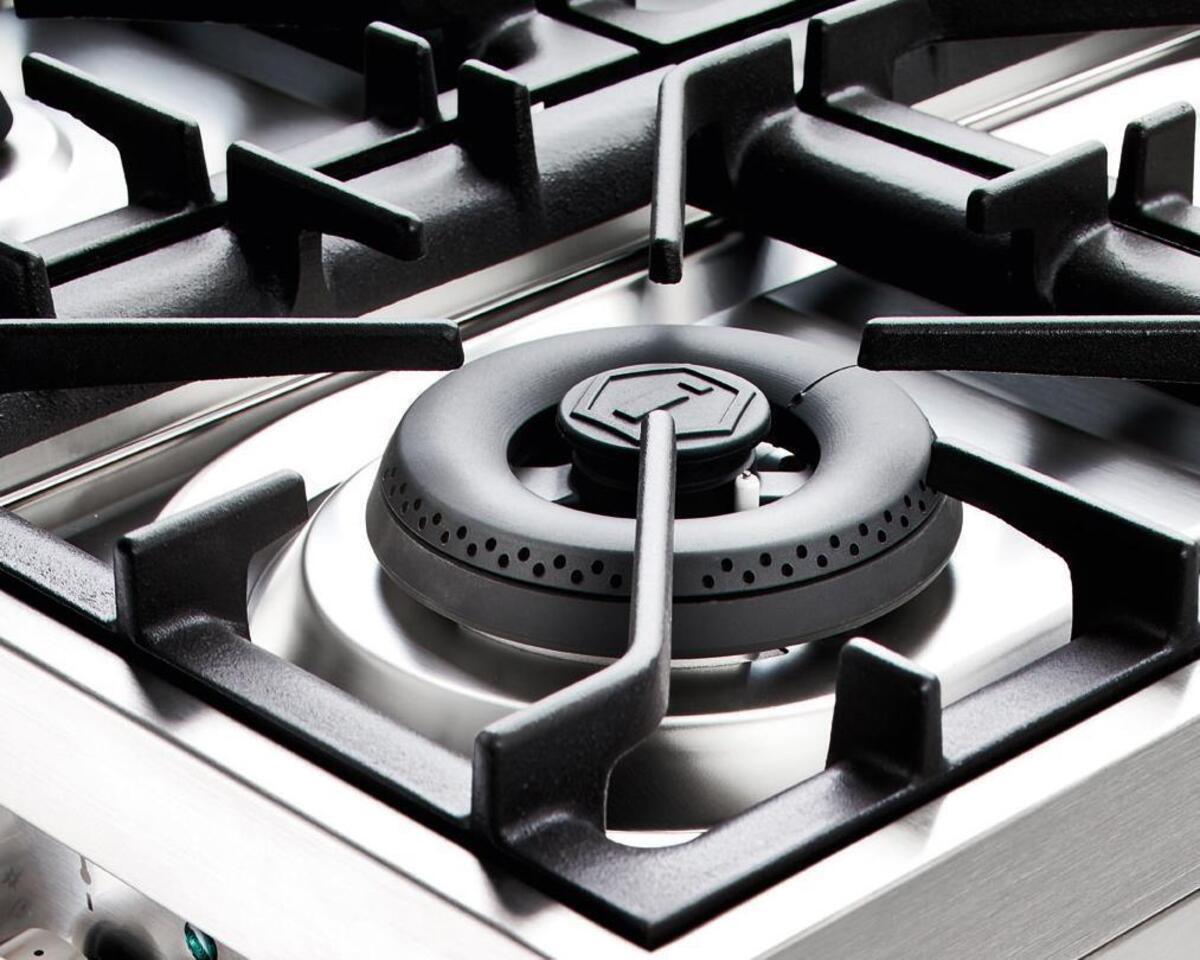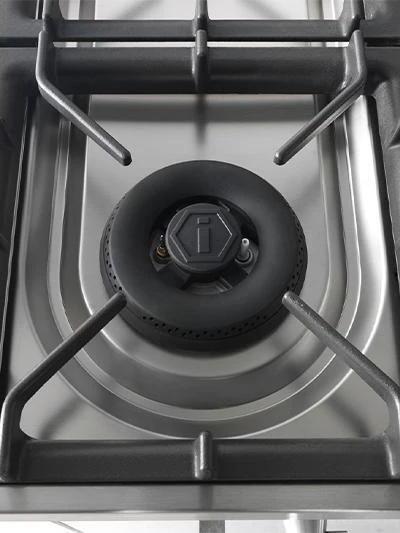 The 6 solid brass burners are treated with ILVE’s patented Nanotechnology with a matt black non-stick coating. These are also new designs that are 8% more efficient and emit 66% less CO2, with a new flame configuration to provide improved burner and flame performance.