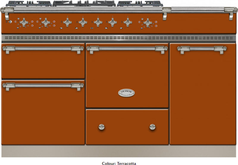 This Lacanche Classic Chemin Range Cooker features two 56 litre, one 20 litre and one 79 litre ovens, three with grills, and a 5 gas burner hob. There are 30 colour options and 5 trim options meaning you can customise your cooker to your style.