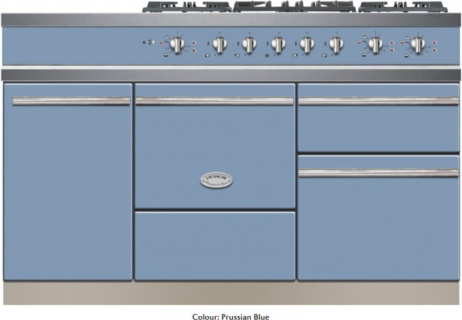 This Lacanche Modern Chaussin Range Cooker features 51 litre, 56 litre, 20 litre and 79 litre ovens, two with grills, and a 5 gas burner hob. There are 30 colour options and 2 trim options meaning you can customise your cooker to your style.