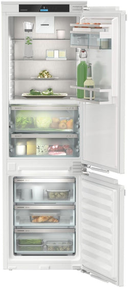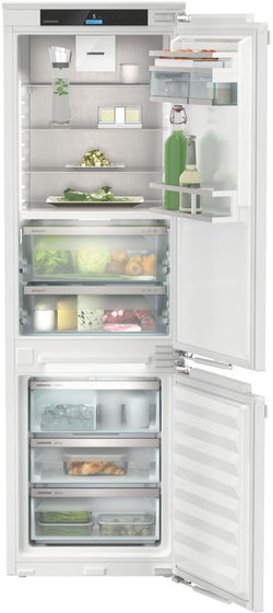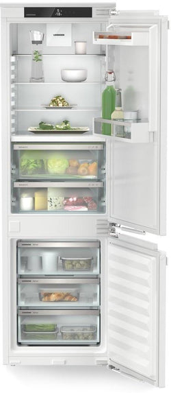 The Liebherr Plus IXRF5125 is an exceptional fully integrated fridge freezer, combining state-of-the-art NoFrost technology in the freezer with the pioneering BioFresh system in the refrigerator. With energy efficiency ratings of E for the freezer and D for the refrigerator, it guarantees reduced energy consumption, saving on bills and benefiting the environment. The IXRF5125 operates at a whisper-quiet 33 dB, ensuring your kitchen remains a peaceful space. Featuring a monochrome LC touch display for easy control, this appliance offers adjustable temperature zones for precise storage conditions. The freezer boasts a generous 213l capacity with eight FrostSafe drawers, while the refrigerator offers a spacious 294l volume, including three BioFresh safes, ensuring long-lasting freshness and nutrient preservation.