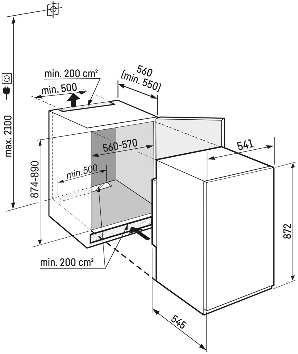 - Installation Requirements (hwd): 874 - 890 x 560 - 570 x 550 mm
