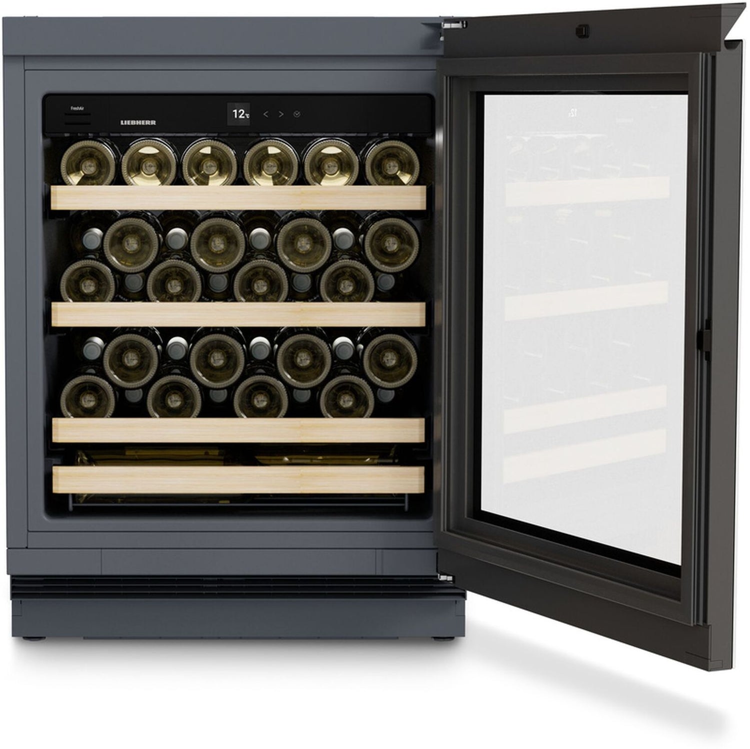 The Liebherr UWGB3631 is a sleek, built-under wine cooler designed to store up to 44 bottles at optimal conditions. With a temperature range of 5–20 °C, UV-protected glass door, and low-vibration, humidity-controlled environment, it preserves wine quality and flavour. Its touch controls, telescopic shelves, and soft UV lighting make organisation and presentation effortless. The UWGB3631 also features an audible/visual temperature alarm, FreshAir filter, and Sabbath Mode. A lockable, reversible door and display lock offer added security and convenience. Finished in elegant GlassBlack, it blends seamlessly into modern kitchens while keeping your collection in perfect condition.