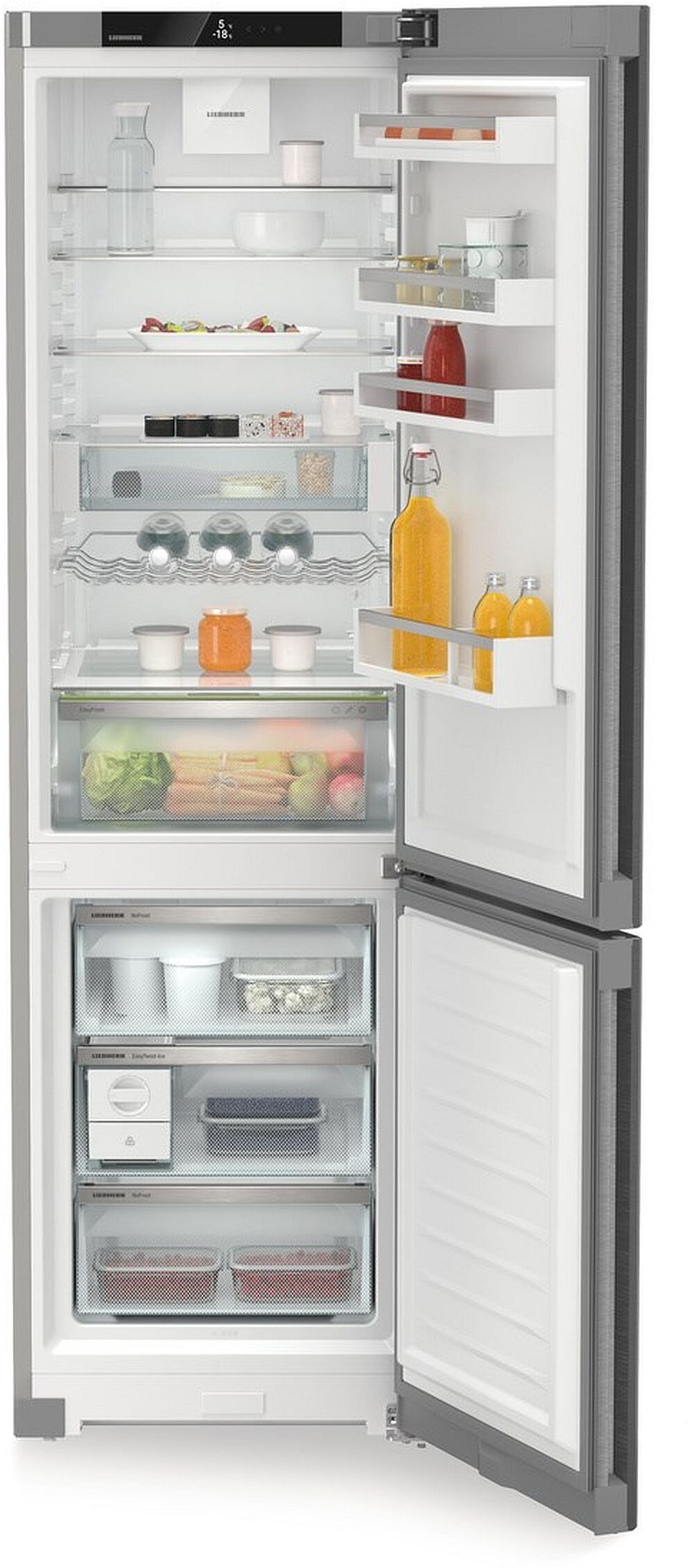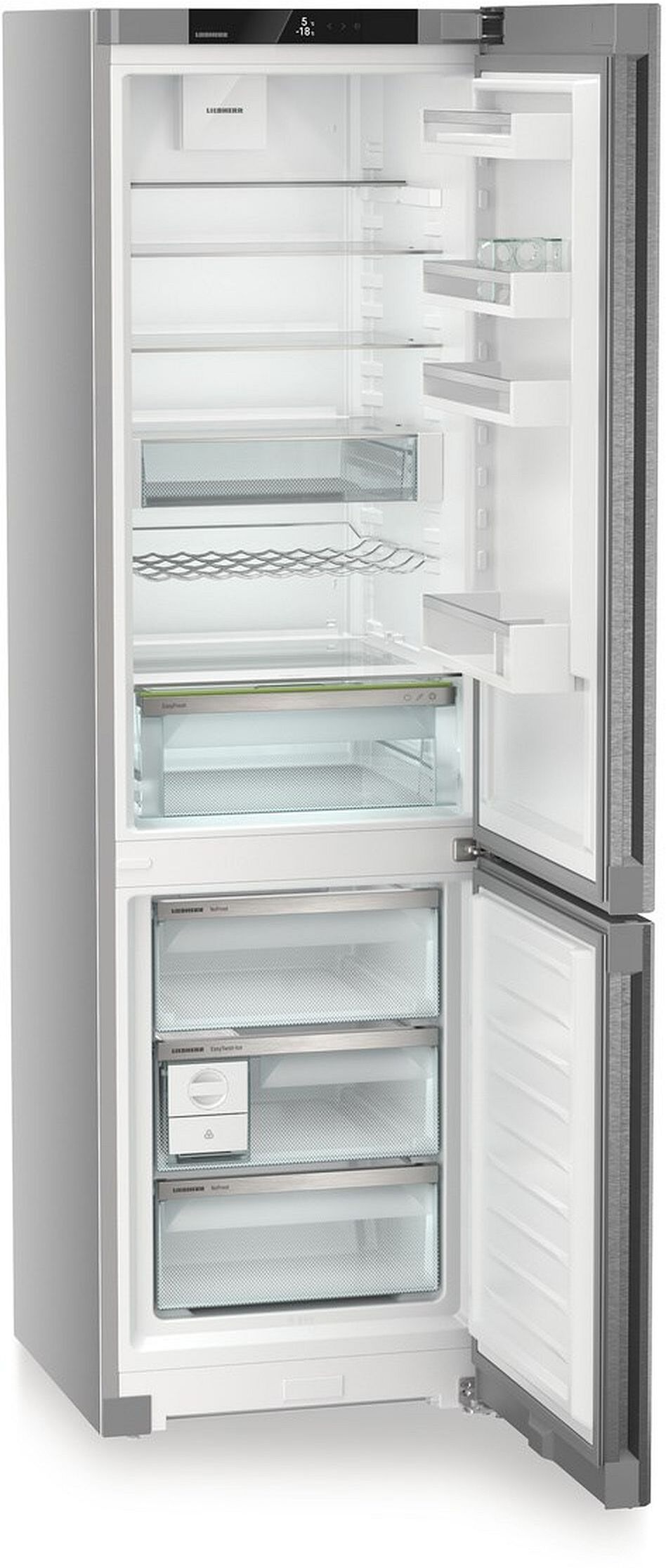 The Liebherr CNSDB5723 is packed with features designed to enhance your convenience and the quality of food storage. DuoCooling technology uses separate cooling circuits for the fridge and freezer, preventing the transfer of odours and maintaining ideal humidity levels. The EasyFresh function ensures that your fruits and vegetables stay fresher for longer. The SuperCool and SuperFrost functions quickly lower the temperature in the fridge or freezer, perfect for rapidly cooling newly added items.