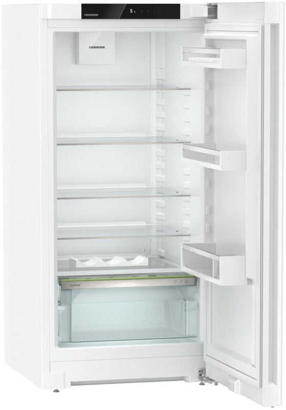 Introducing the Liebherr RD4200 Pure 60cm Wide Larder Fridge in elegant white (Product Code: RD4200). With a generous 247L net fridge volume and energy-efficient Auto Defrost, it ensures freshness without frost buildup. Enjoy the convenience of adjustable shelves, LED lighting, and a user-friendly touch display. Featuring a versatile design with reversible door and adjustable feet, it fits seamlessly into any kitchen. Keep contents organized with five shelves, three door bins, and a dedicated egg tray. Experience enhanced usability with features like Open Door Alert and Temperature Warning. Elevate your cooling experience with Liebherr's signature quality and innovation.