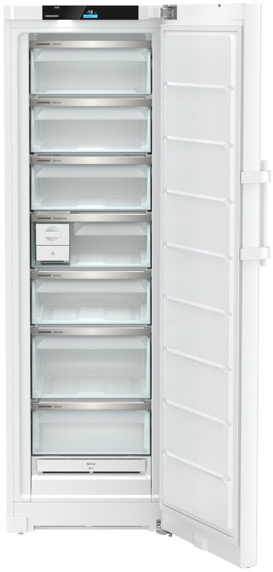 Introducing the Liebherr FNC527I Peak 60cm Wide Frost Free Freezer in White. With a capacious 278L Net Freezer Volume and No Frost technology, bid farewell to icy build-ups. Enjoy seamless control with Touch & Swipe Display, LED lighting, and adjustable shelves for optimal organisation. Stay alerted with the Open Door Alert and Temperature Warning features. From BottleTimer to SuperFrost, revel in versatile functions tailored to your needs. Designed for convenience with a reversible door and a power failure alarm, this freestanding freezer offers efficient storage, ideal for any space. Upgrade to superior freezing efficiency with Liebherr.