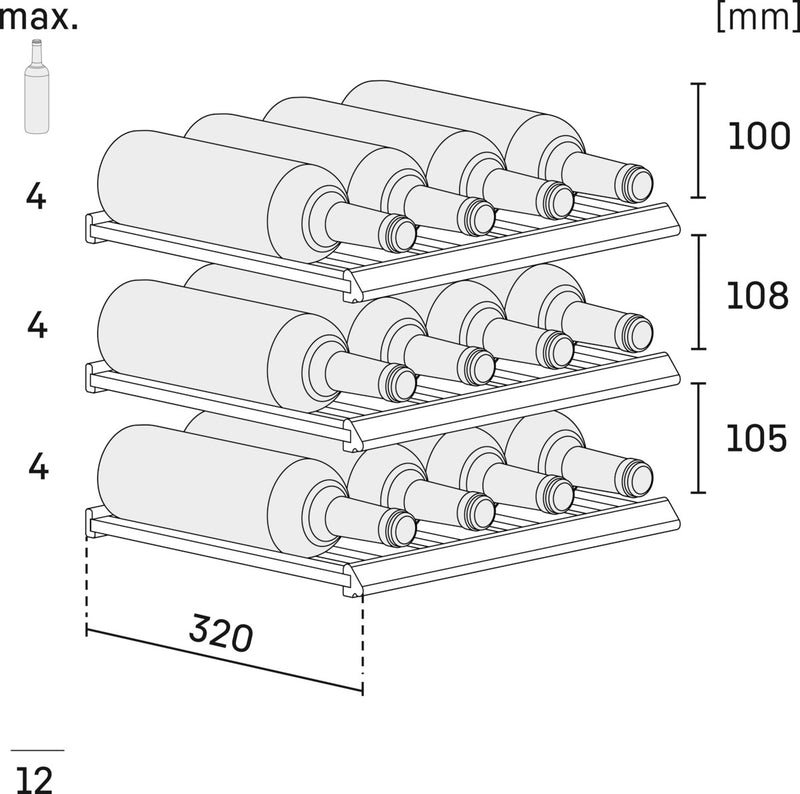 - 12 Bordeaux 0.75 Litre Bottle Capacity