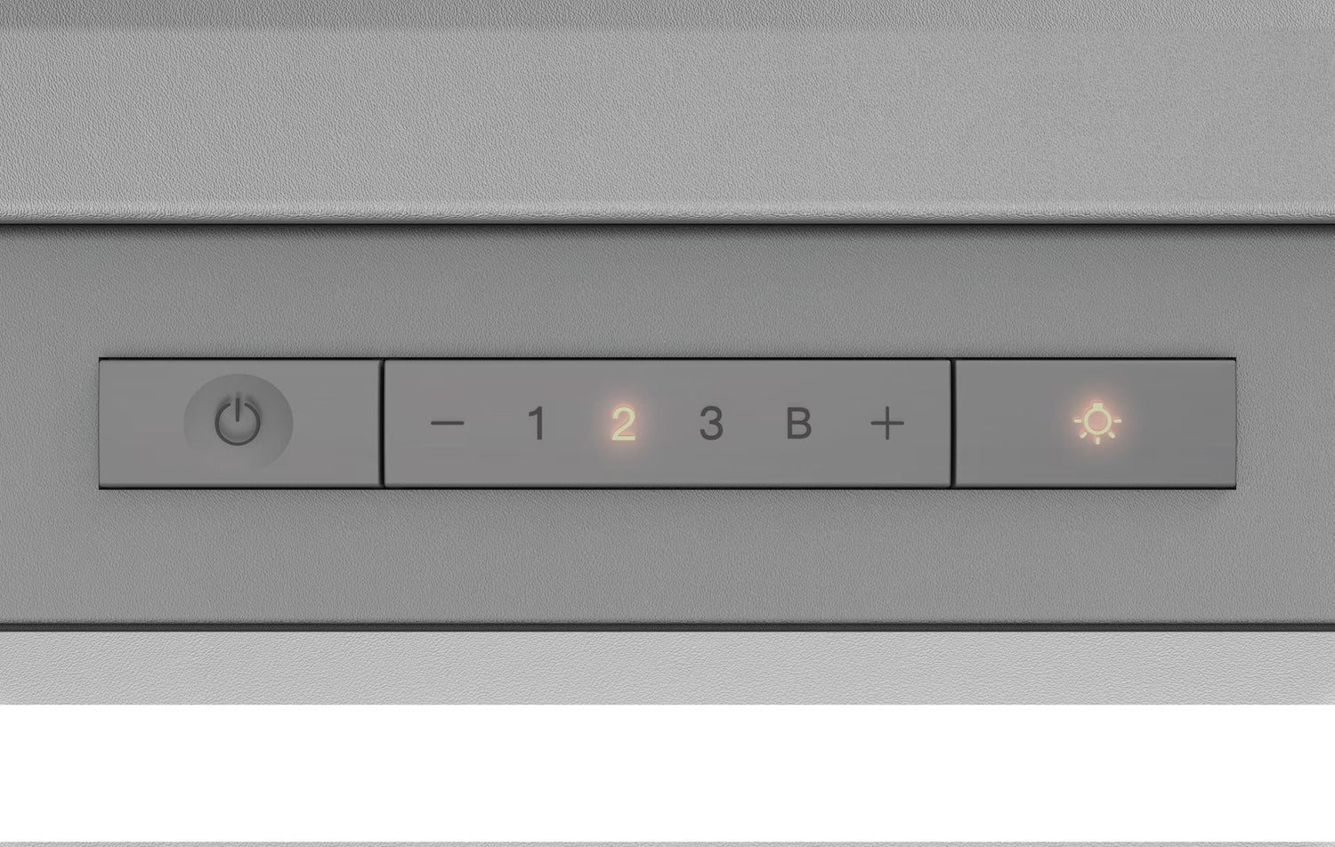 The Miele DAE1530 built-in canopy hood combines sleek stainless-steel design with powerful performance. With three speeds and a booster function, it offers an extraction rate of up to 675 m³/h while maintaining quiet operation at just 65 dB. Its dual-action fan and 10-ply stainless-steel grease filter ensure efficient ventilation, while intuitive touch controls and LED lighting enhance ease of use. Designed to fit neatly into cabinetry at just 53.2 cm wide, the DAE1530 is ideal for modern kitchens seeking effective, space-saving ventilation. Safety switch-off and Miele CleanCover add peace of mind and easy maintenance.