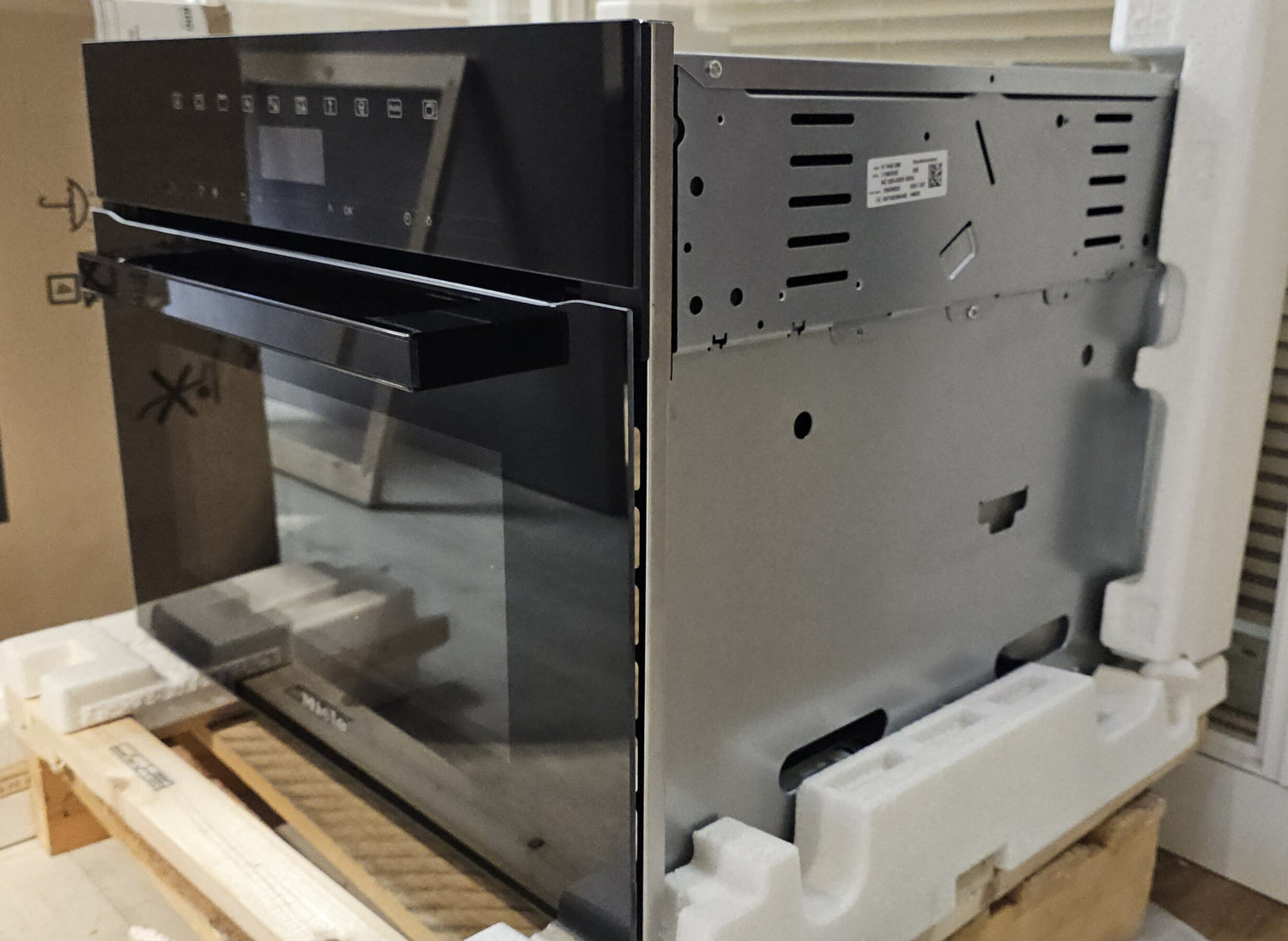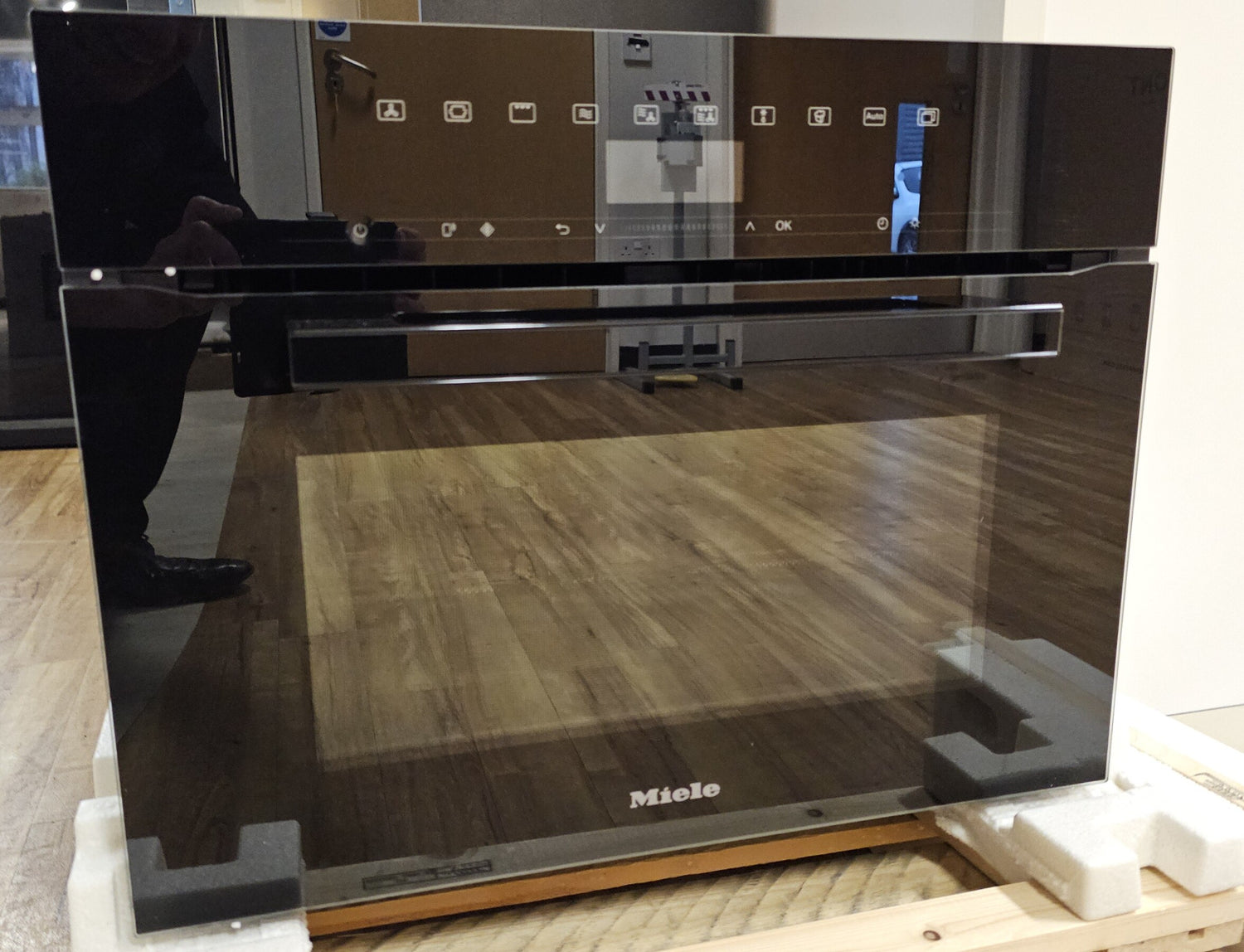 Clearance Bargain, Limited Delivery Area (parts of Surrey, Sussex or Kent) Or Collection Only * Unused, Signs Of Fitting *The Miele H7440BM VitroLine Compact Microwave Combination Oven provides seamless functionality and design in your kitchen. This innovative unit, tested for 20 years equivalent use, has 12 operating modes for versatile cooking, including fan grill, auto roast and special applications. The Quick & Gentle feature, along with the rapid heat-up, ensure efficient food preparation. User programmes, soft-close door, and a date and time display provide enhanced convenience. Its durable, stainless-steel oven compartment with a PerfectClean finish ensures easy cleaning. Enjoy the connectivity of Miele@Home and WiFiConn@ct for smart, remote operation, delivering a truly modern cooking experience.