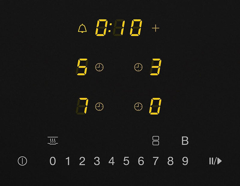 All cooking zones and power levels are controlled via a central numerical keybank.