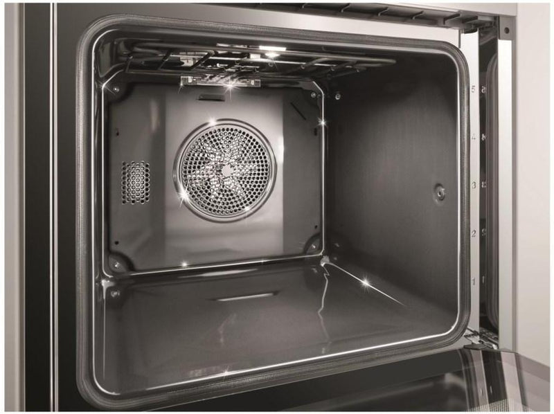 This intelligent, energy-efficient (A+ rated) oven can be controlled remotely using WiFi, for convenience. The Moisture Plus with Fan Plus technology adds moisture to baking or roasting, for delicious breads and meats. Cleaning is simple, with its pyrolytic cleaning mode, which operates automatically at high temperatures. The timer can be programmed easily to start and finish cooking at the right time, and for safety, the oven automatically switches off if it’s left on too long.