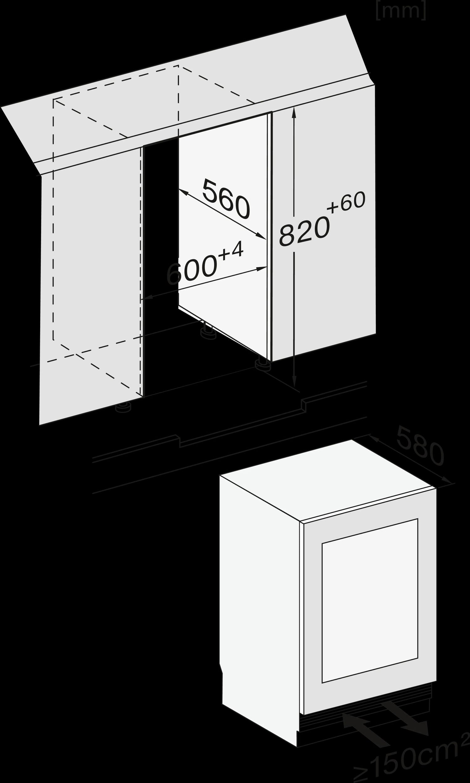 - Niche Dimensions (h w d): 820 x 600 x 580 mm