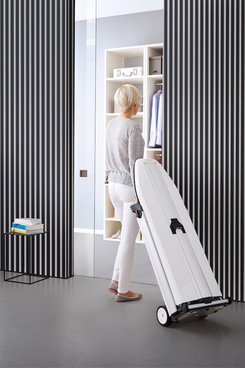 Mobile and nimble: The FashionMaster stands firmly without requiring additional support even when folded-up, and can be positioned anywhere in your home. With its soft castors, the FashionMaster can be moved effortlessly and follows you wherever you go. It takes door thresholds, carpet edges and even the odd step or two in its stride.