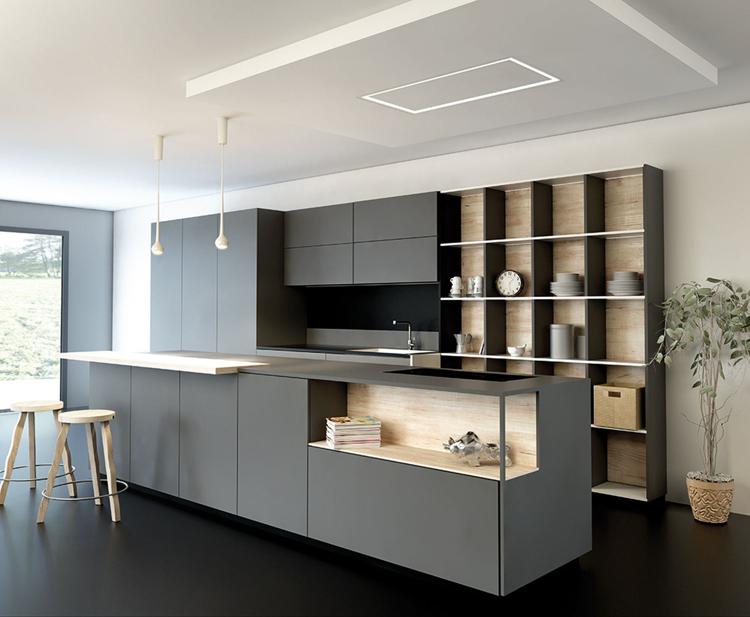 The design of the SENSE-275020 is both minimalist and elegant, with a white lacquered finish that complements a wide range of kitchen styles. The hood is 101 cm wide, making it suitable for larger cooktops and providing extensive coverage. Its ceiling-integrated design ensures that it remains unobtrusive, preserving the clean lines of your kitchen while still offering excellent functionality.