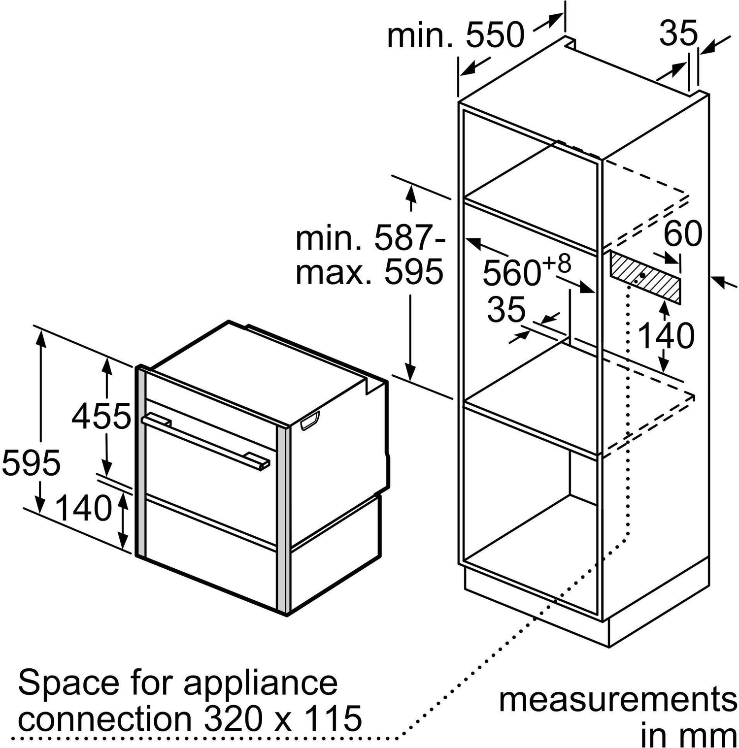 - Uniform design strips for seamlessly combining a compact oven with a warming drawer (140 mm)