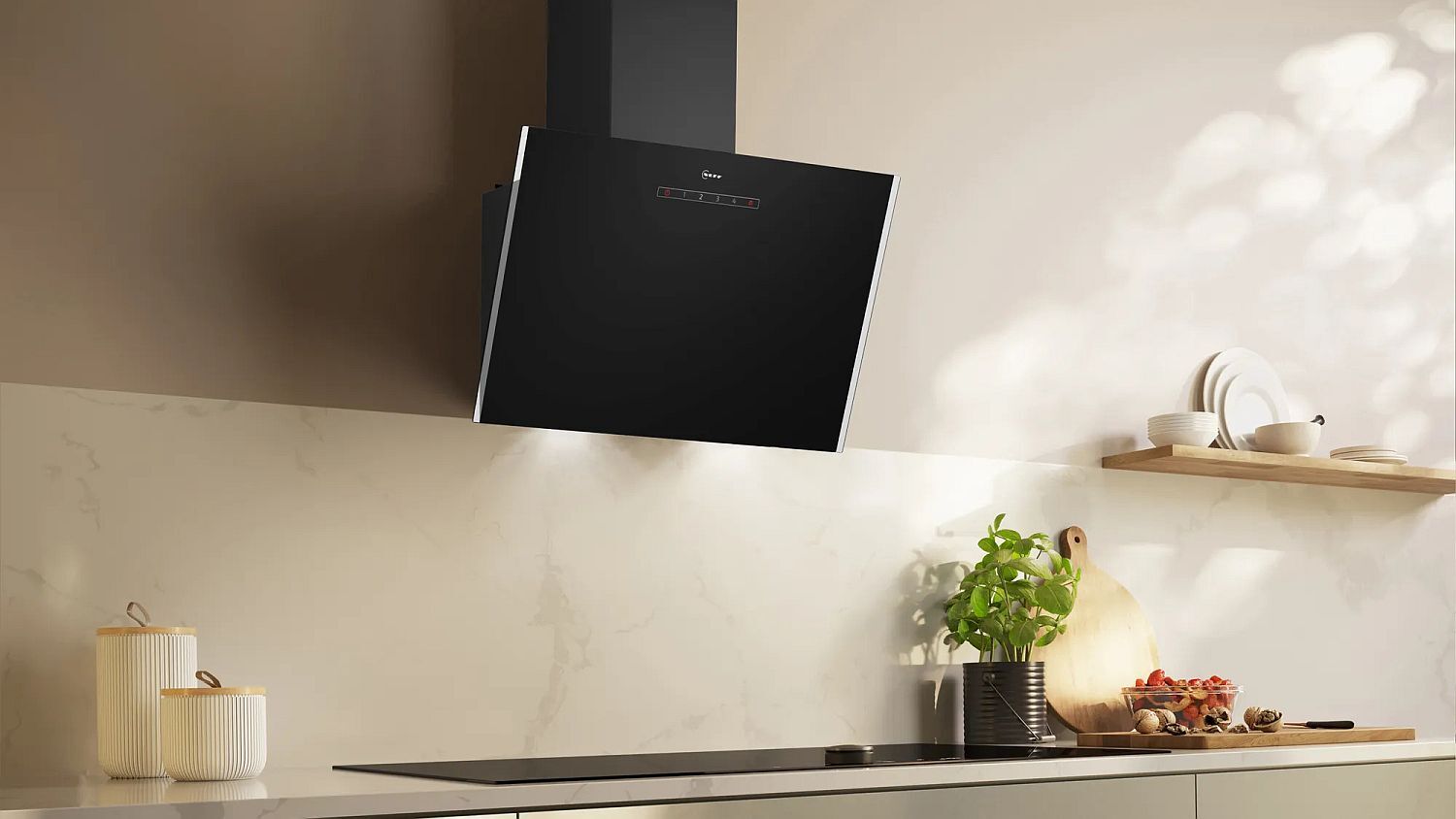 Neff N30 60cm Angled Hood - Black Glass & Anthracite Black Chimney