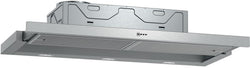 The Neff D75NAC1S0B is built with practicality in mind, featuring a fluid dynamic class of A for optimal air movement and a grease filter efficiency class of D. It requires a minimum distance of 50cm from an electric hob or 65cm from a gas hob for safe operation. The hood includes an internal motor, eliminating the need for external components, while its compact design ensures it integrates seamlessly into your kitchen cabinetry. The duct size of 120/150 mm allows for straightforward installation.